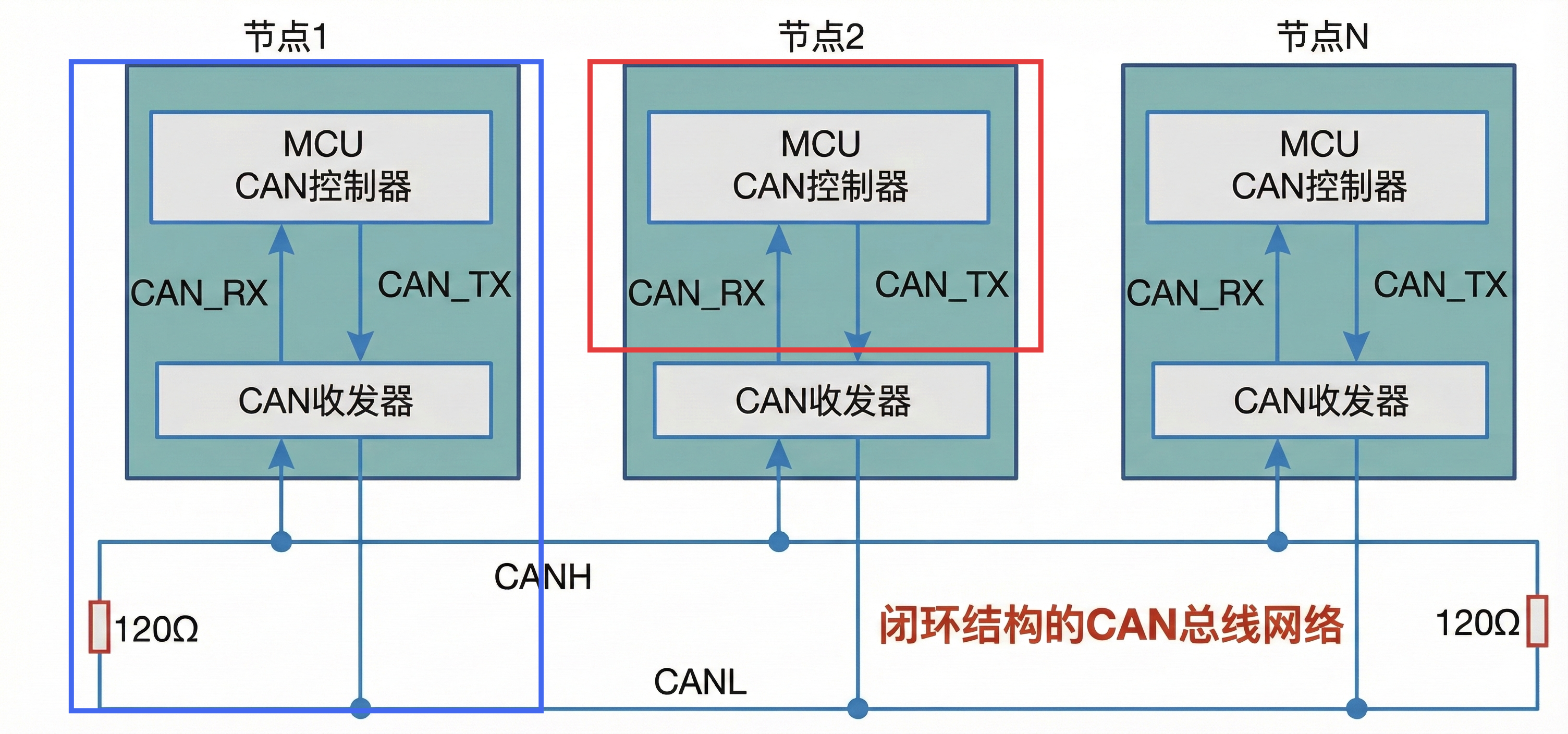 • CAN 控制器会将自己从物理总线上断开,彻底停止收发数据。